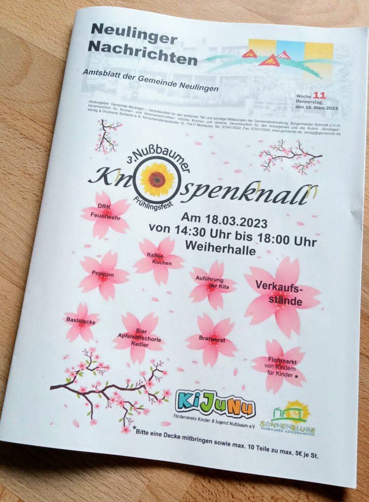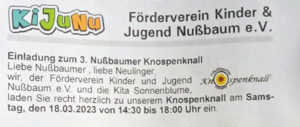 Der Frühling ist da! Und wir wollen ihn ordentlich feiern. Deswegen laden wir alle recht herzlich zum “Knospenknall” ein!