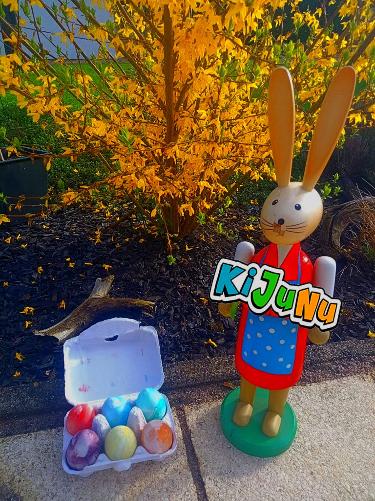 Der vom KiJuNu beauftragte Osterhase brachte dieses Jahr jedem Kindergartenkind einen Schokohasen und 6 bunte Eier, letzteres entpuppte sich als Kreide für die die Straße.